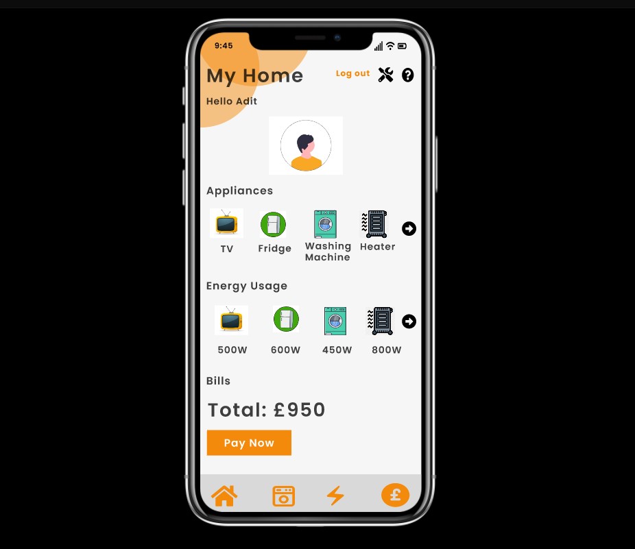 A simple app design for energy monitoring app. Get an idea on the energy usage of home appliances and your energy bills.
